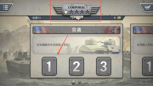 2、如何开始突袭?选择“CORPORAL 玩家11”,点击“突袭”并确认“击溃敌人军队”任务即可开战。