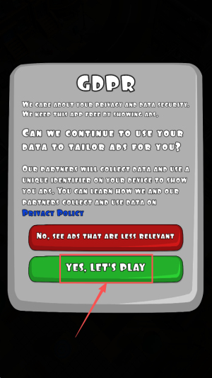 1、首先,点击“YES. LET'S PLAY”按钮同意隐私政策并开始游戏。