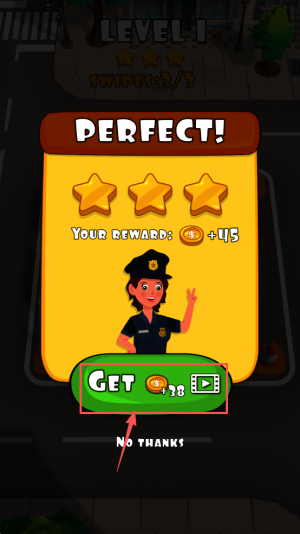 4、最后,完成关卡后,点击“GET”按钮领取奖励并继续游戏。