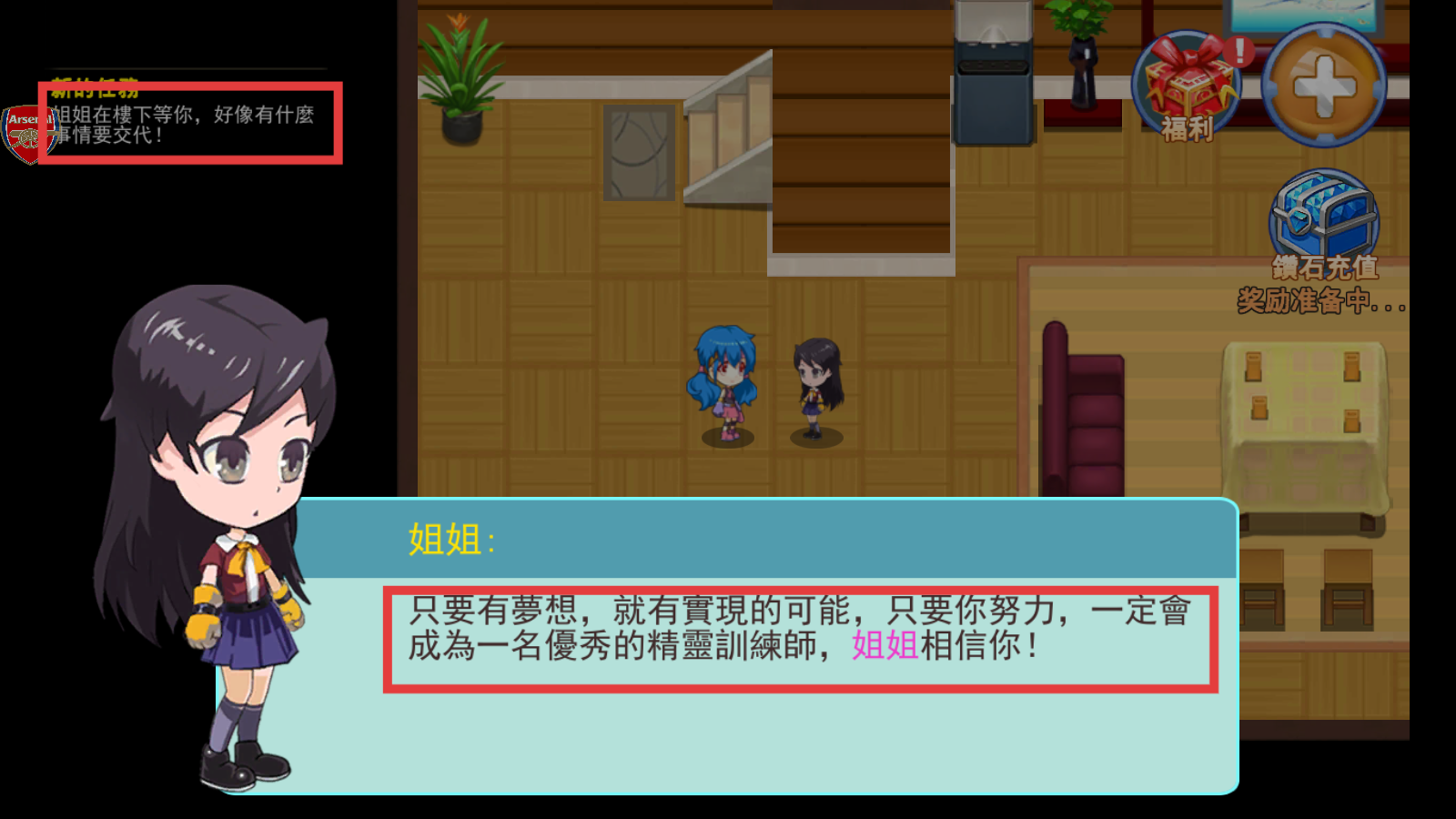 4、找到姐姐后,聆听她“只要有夢想,就有實現的可能,只要你努力,一定會成為一名優秀的精靈訓練師”的鼓励,获取冒险的动力与目标。