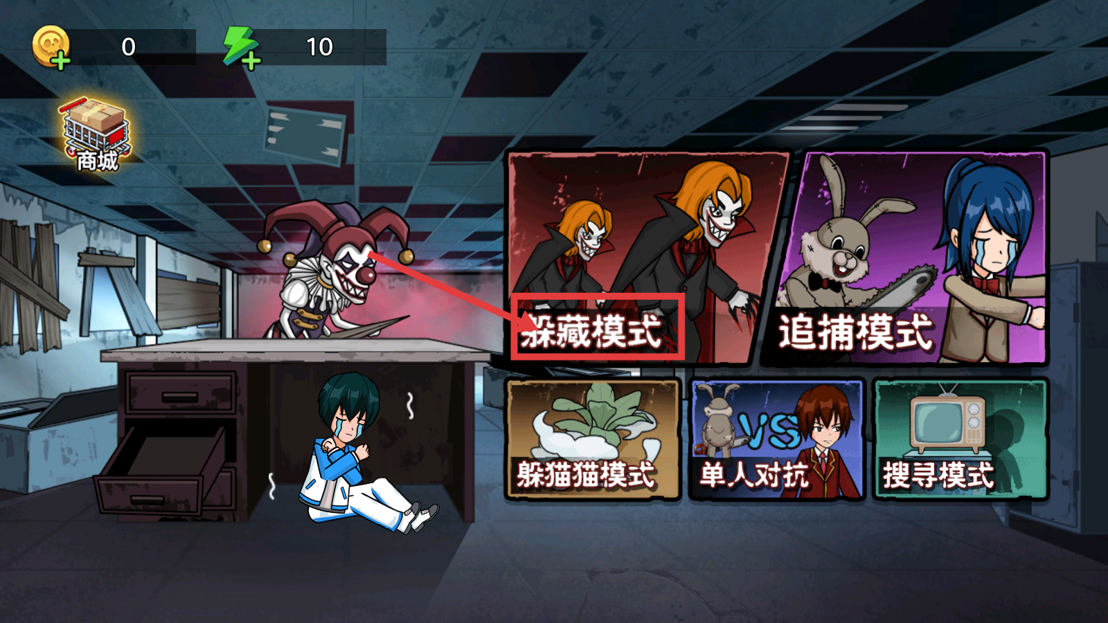 1、进入游戏后,选择【躲藏模式】,开启躲猫猫类的躲藏挑战,需在场景中避开追捕者。