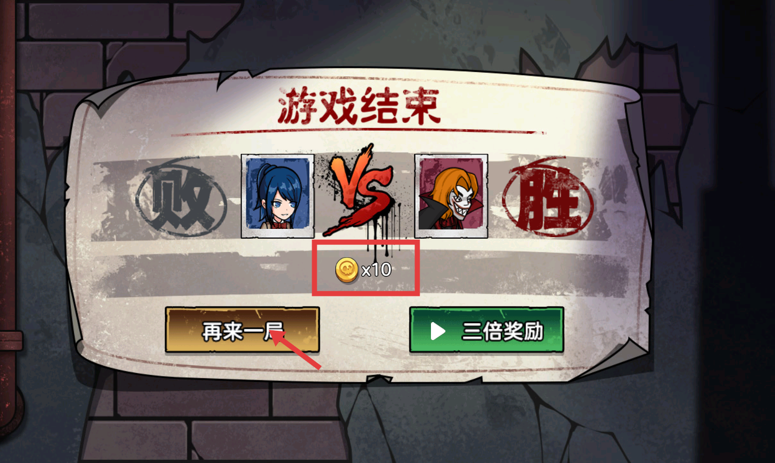 4、挑战结束后,即使失败也能获得【金币×10】奖励,可点击【再来一局】继续挑战,积累经验提升躲藏技巧。