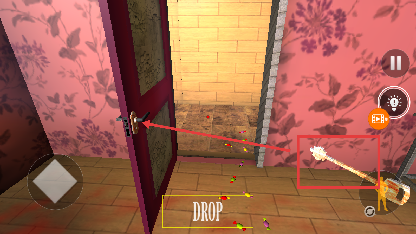 4、找到钥匙类道具后,移动到门口,使用钥匙与门锁互动,尝试打开房门,继续深入探索游戏场景。