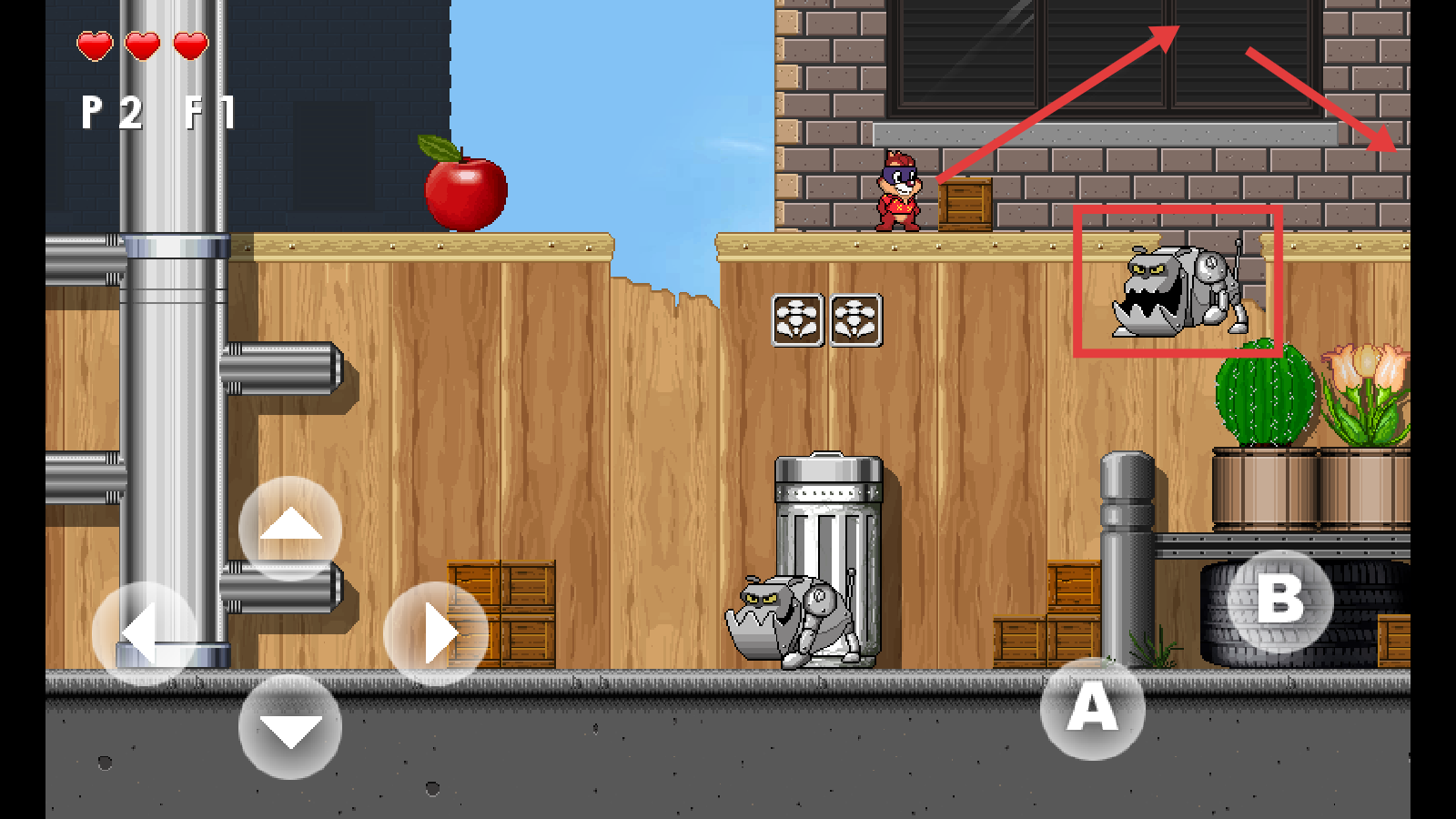 2、在场景中利用方向键控制移动,遇到道具如苹果时,可通过【A】【B】键互动获取。