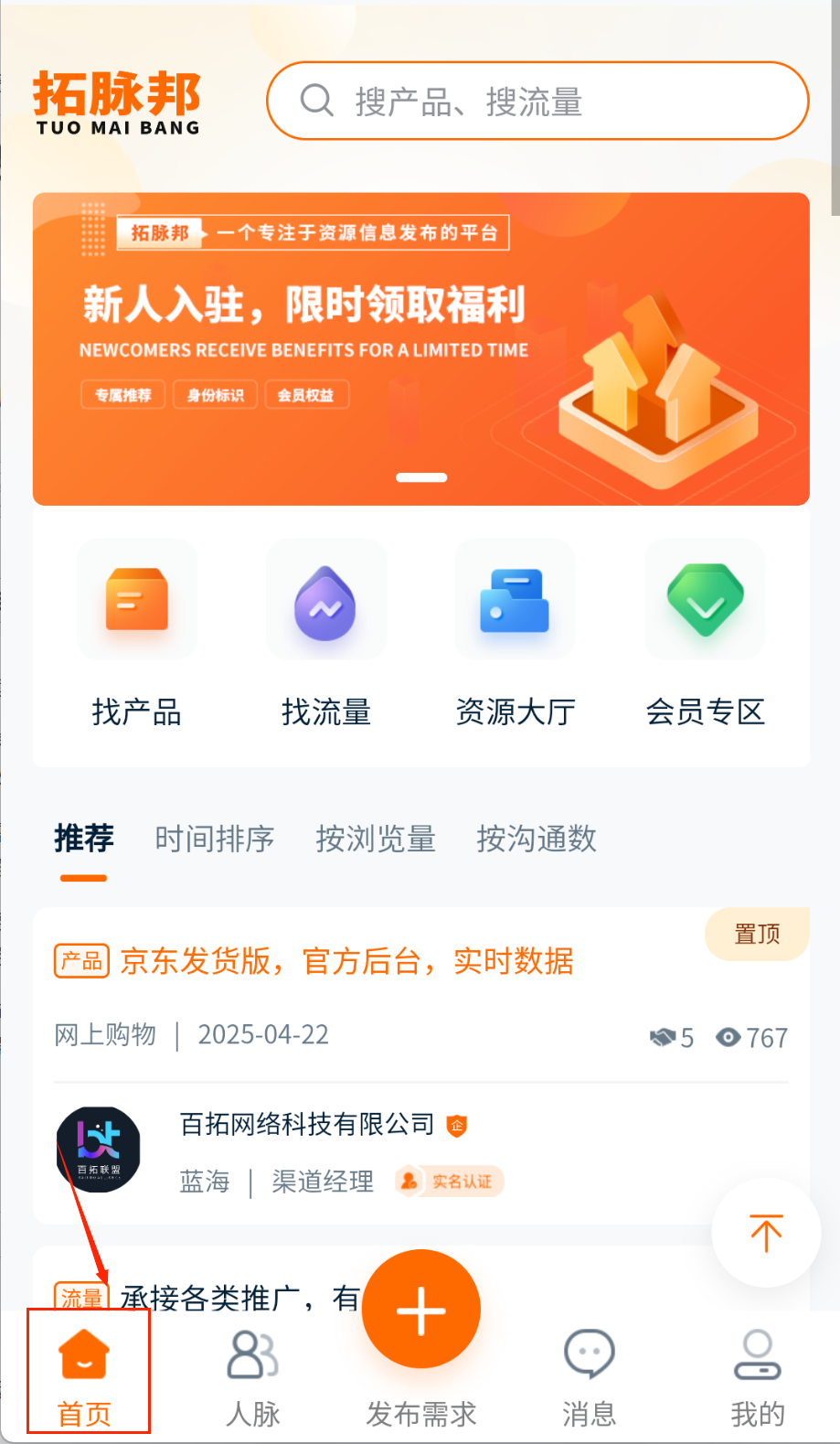 拓脉邦整合了产品项目、推广渠道、人脉资源等各类商业信息,通过智能算法为用户精准匹配潜在合作伙伴,提供从资源查找、需求发布到在线洽谈的一站式服务,其严格的审核机制确保所有资源真实可靠,简洁的操作界面与个性化推荐功能让商务拓展更加高效便捷。
