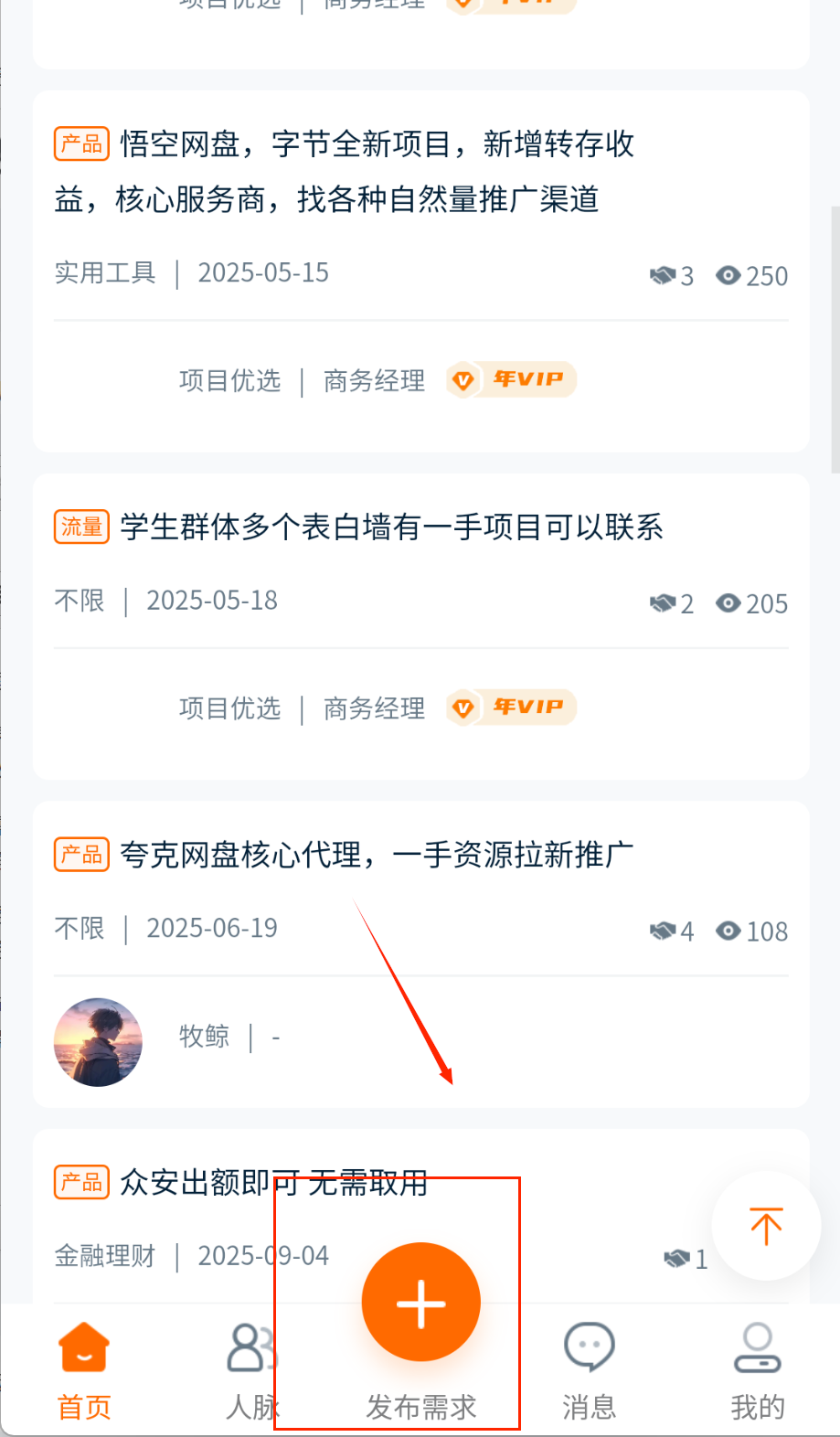 2、需求响应中心集中展示用户发布的各种合作意向,可按时间、地域、预算等条件快速筛选,支持一键联系发布者。