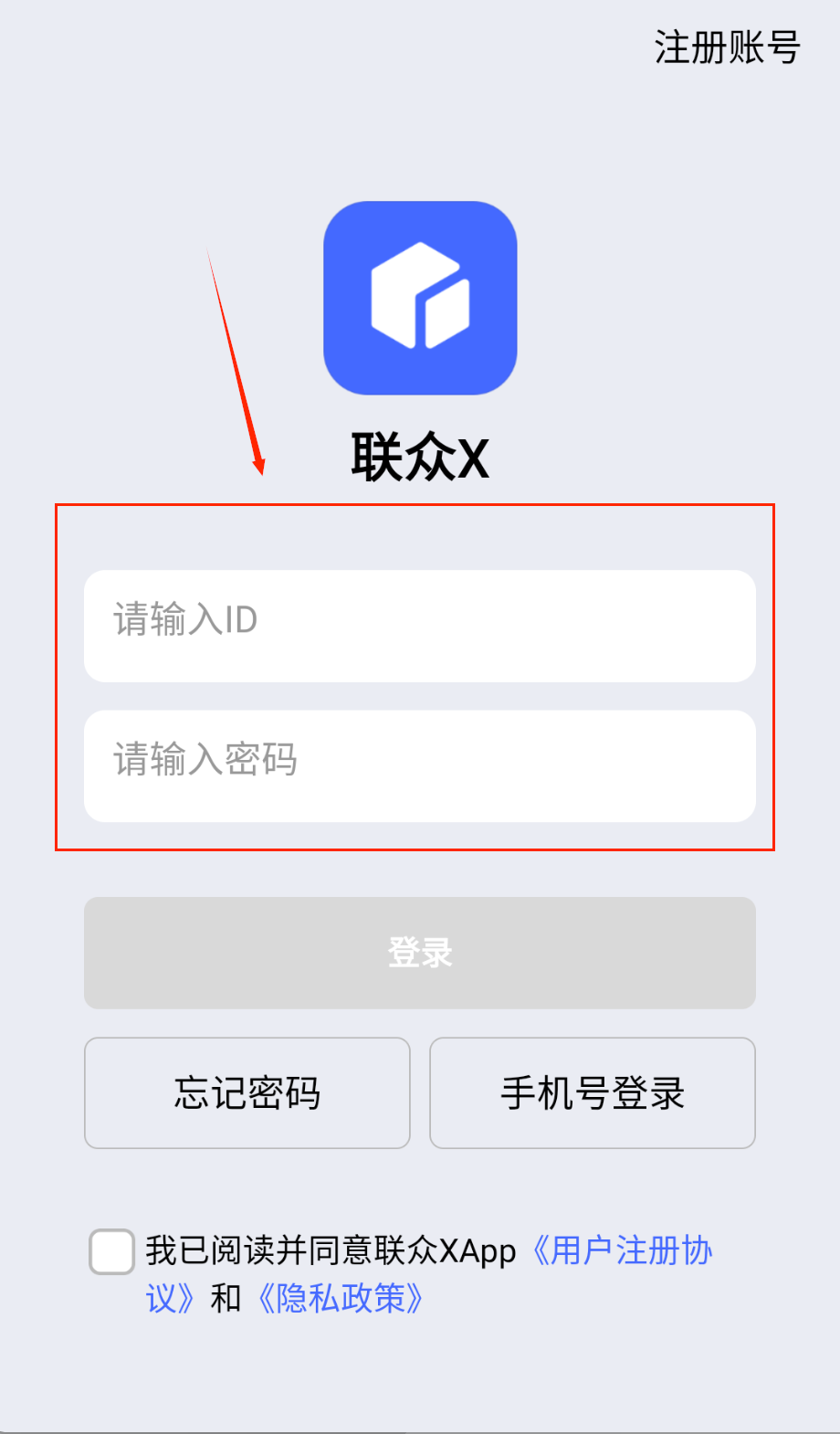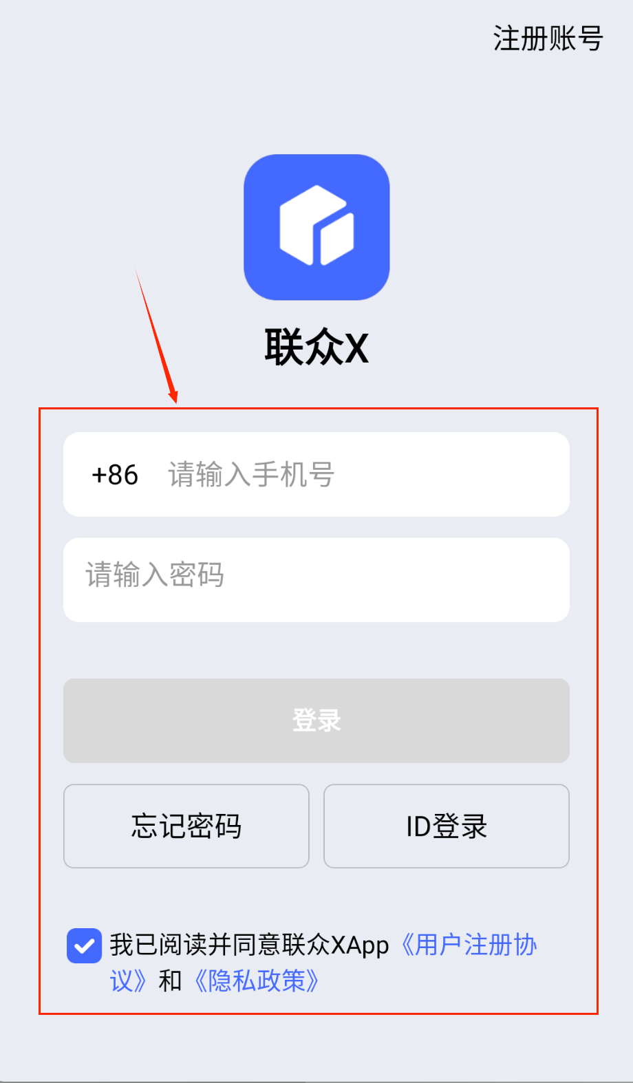 2、登录时在首页输入ID和对应密码,也可以选择手机号登录方式,输入完整信息后记得勾选同意用户协议,然后点击登录按钮就能进入系统。
