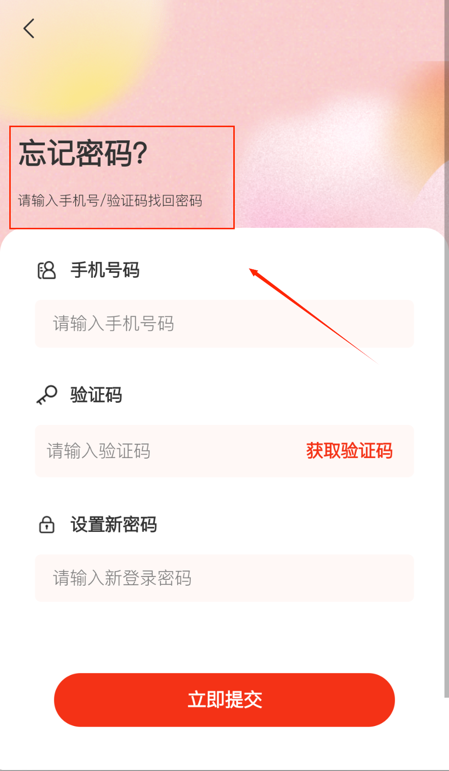 3、要是忘记密码就点忘记密码链接,输入注册手机号获取验证码,设置新密码后提交就能重置啦,注意密码要记牢哦。
