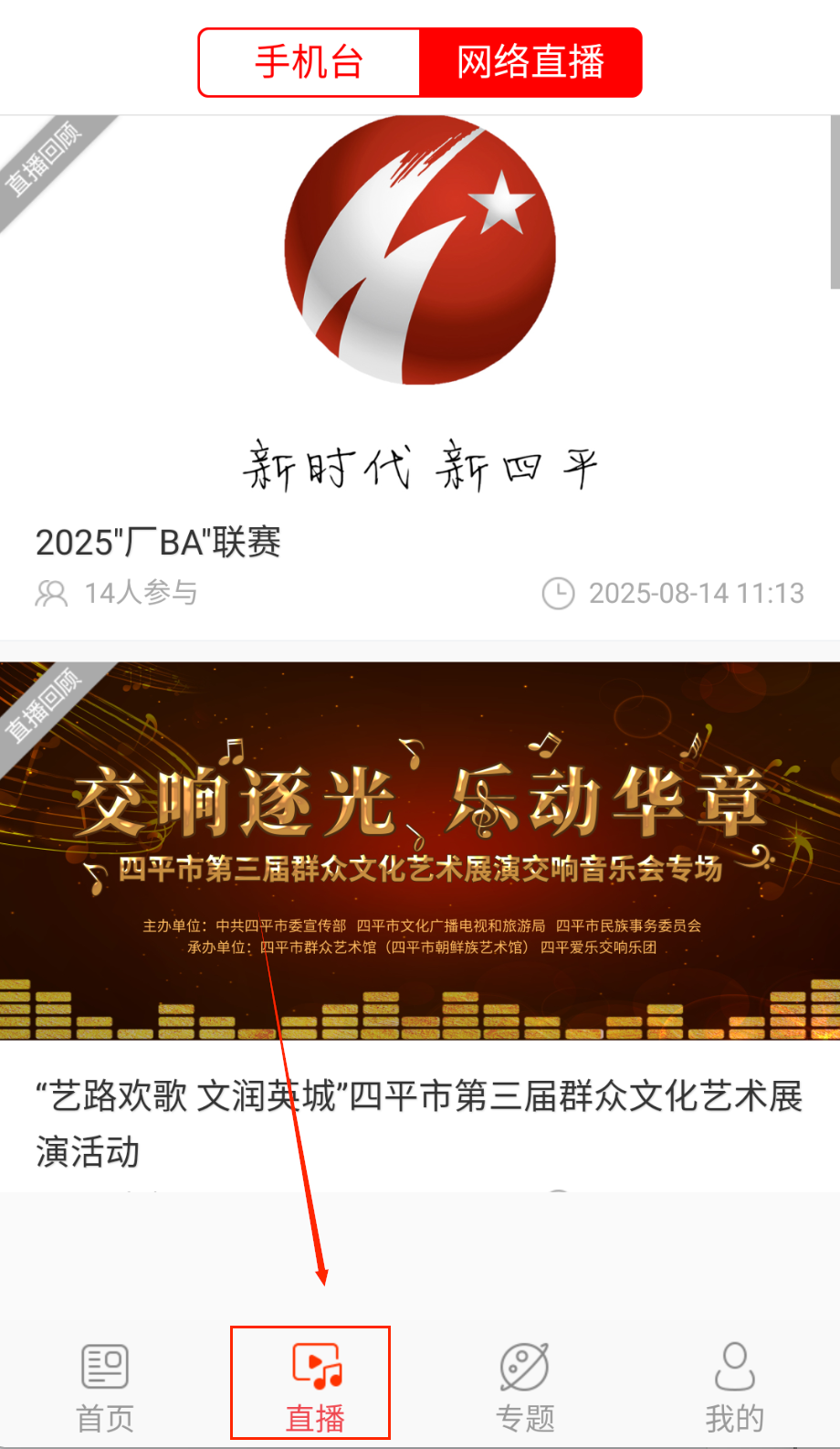 3、在直播板块可以观看四平本地的新闻直播,重要会议和民生事件都会实时直播,让你第一时间了解现场情况,还能在文章底部评论区发表。