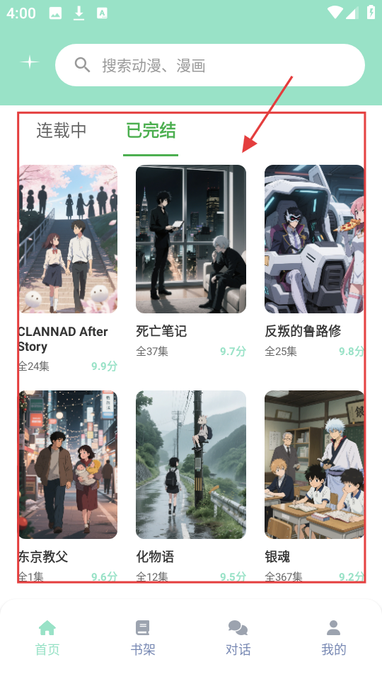 4、在首页切换到已完结板块,可看【CLANNAD-After-Story】【死亡笔记】等已完结动漫,选喜欢的观看。