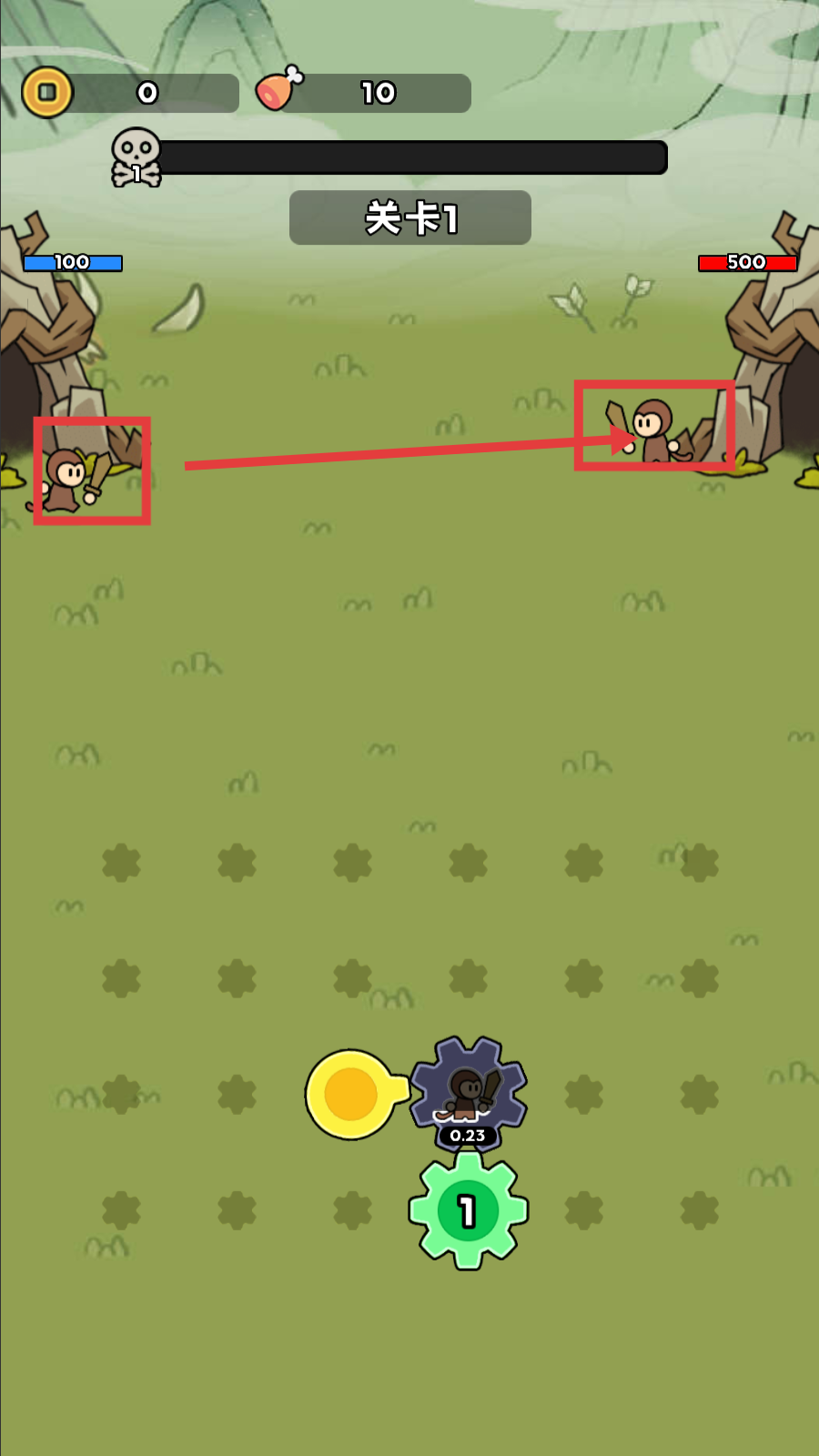 2、完成道具准备后,点击【继续战斗】按钮,即可进入关卡1的对战场景,开启战斗。