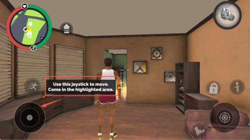 1、如何移动角色?使用屏幕摇杆走进高亮区域即可。