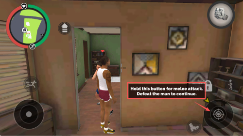 2、如何发动近战?长按指定按钮打出近战攻击,击败男子即可继续。