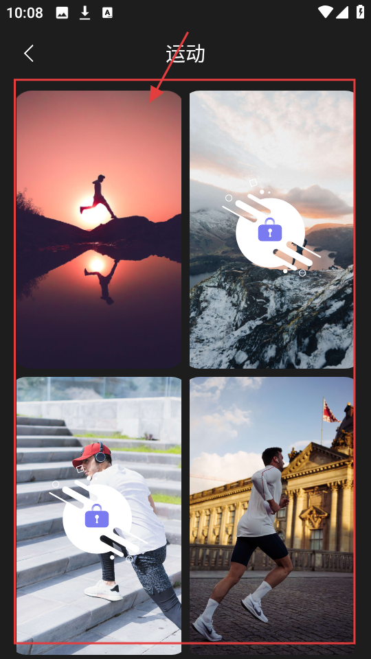 2、进入【运动】分类页,可看多张运动主题图片,选心仪图片,查看详情。