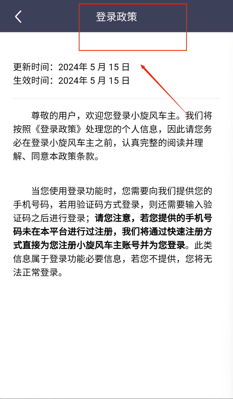 1、首先要注意查看登录政策的更新时间哦,2024年5月15日更新的版本需要仔细阅读,特别是加粗部分的个人信息处理条款呢。