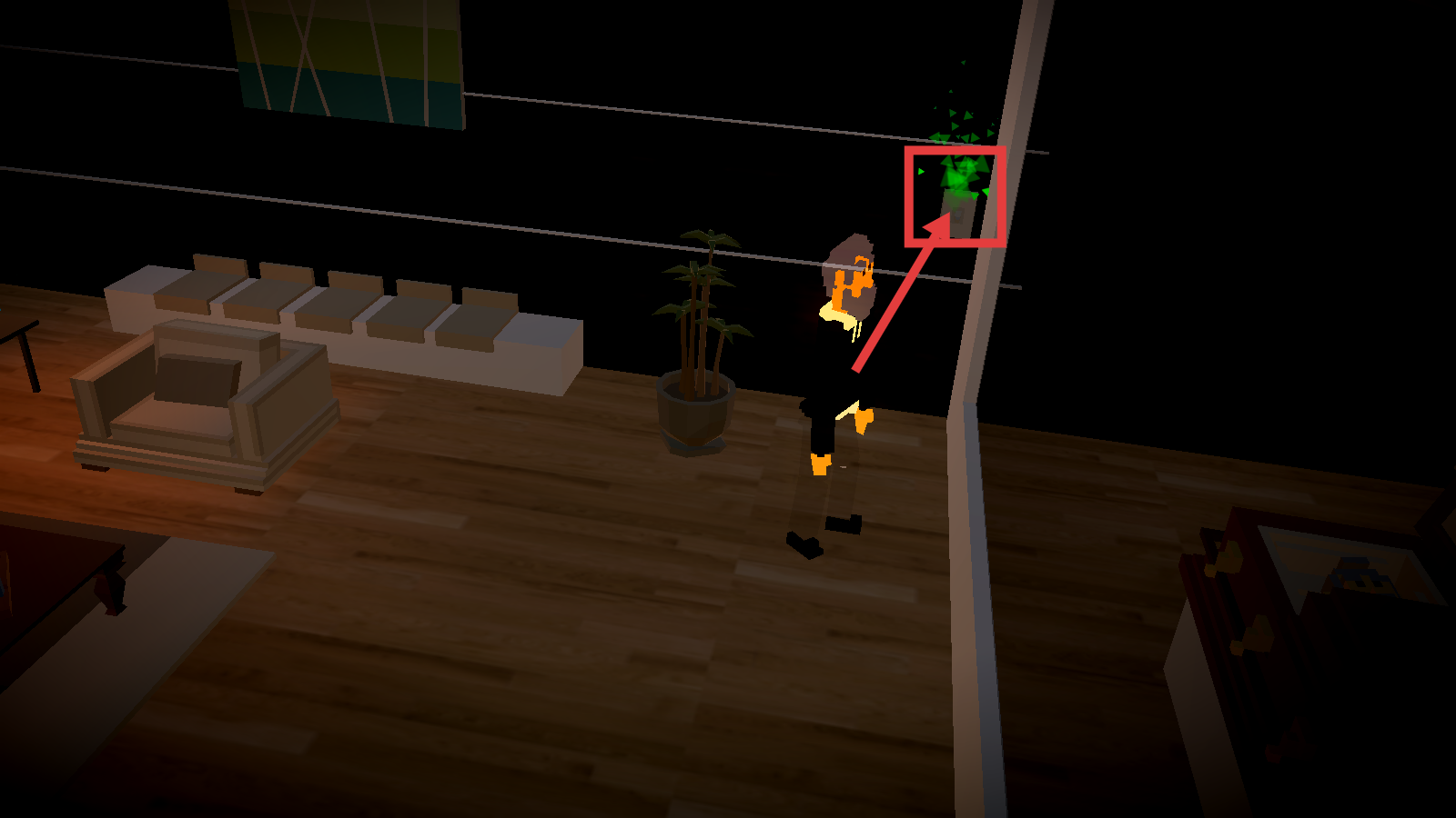 2、在室内场景里,重点关注【发光的盆栽】,它是关键互动点,靠近可触发后续操作。