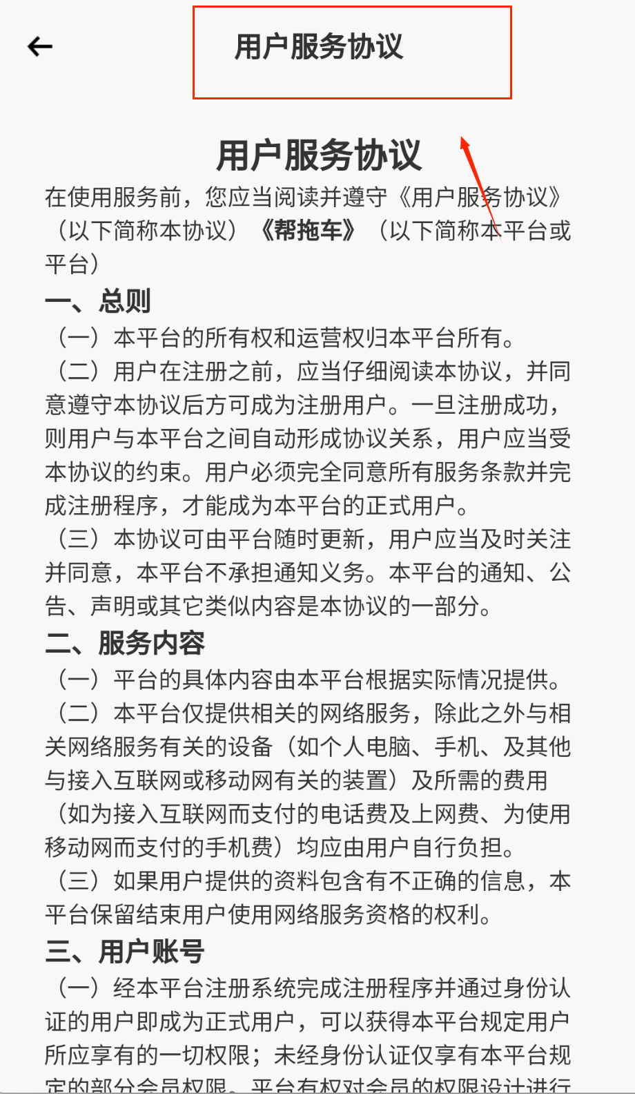 1、先在手机应用商店搜索帮拖车软件进行下载安装,安装完成后打开应用,记得要仔细阅读用户服务协议和隐私政策这些重要文件哦。