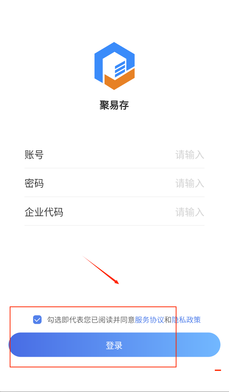 3、登录时需要输入账号密码和企业代码这些信息,记得勾选同意服务协议和隐私政策才能成功登录,要是忘记密码可以通过注册手机号找回哟。