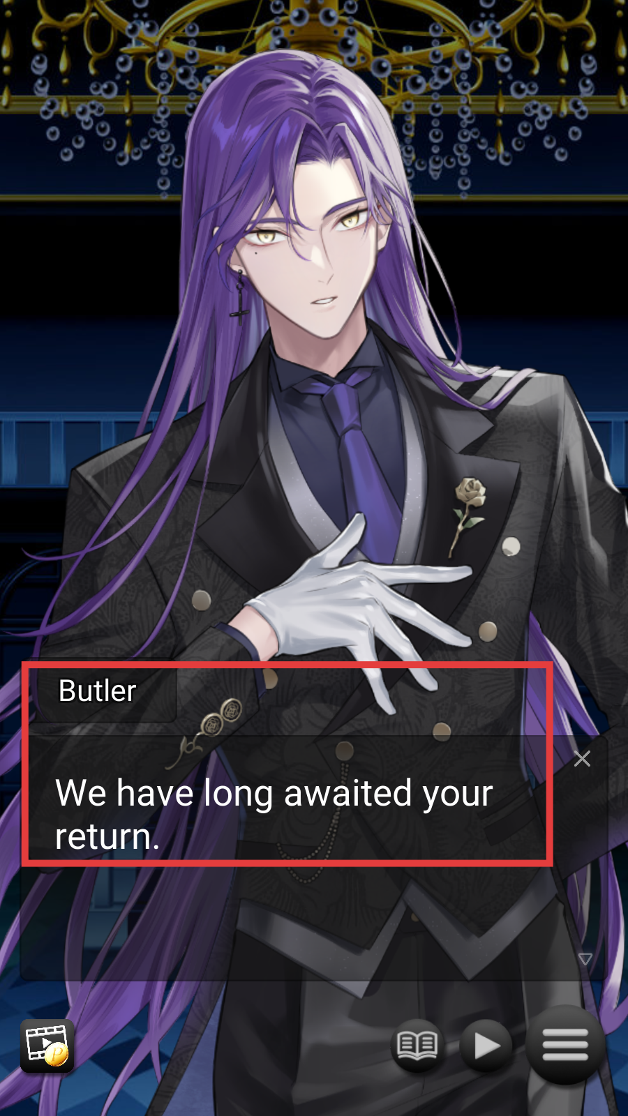 1、进入游戏后,先与【Butler】互动,倾听【We-have-long-awaited-your-return.】的对话,初步了解剧情背景。