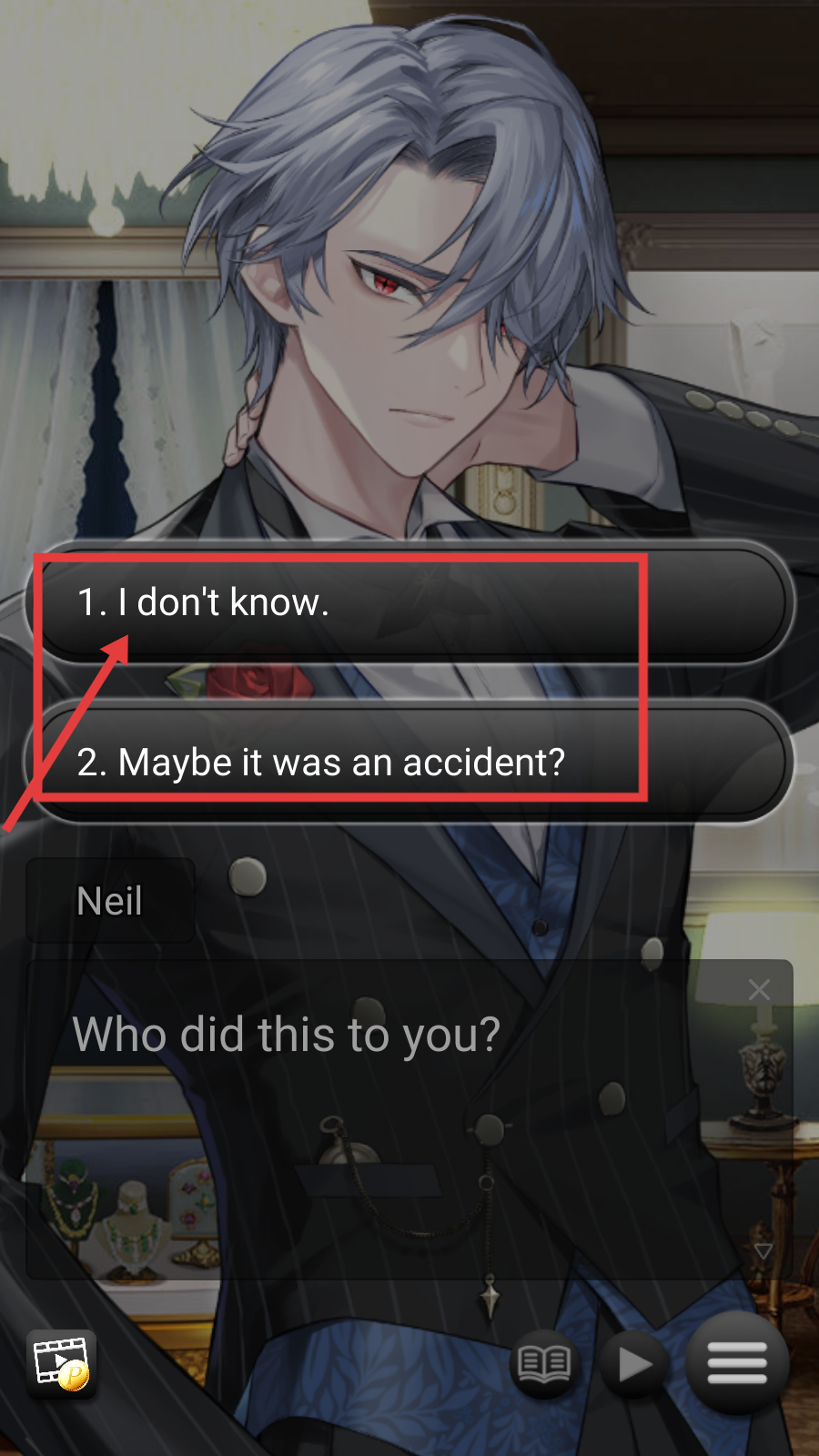 3、和【Neil】对话出现选择时,可选择【I-don't-know.】,契合主角失忆设定,引导剧情走向。