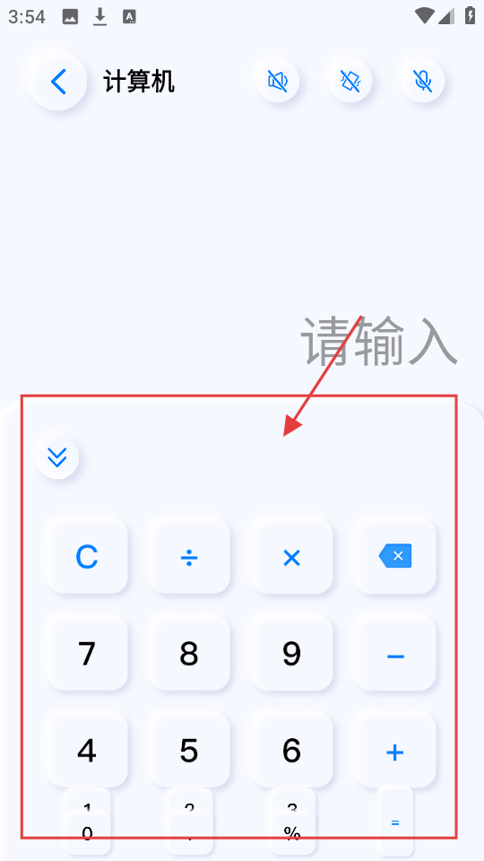 2、进入计算器界面,有数字和运算符号按键,输入要计算的数字和运算符号,即可得出基础计算结果。
