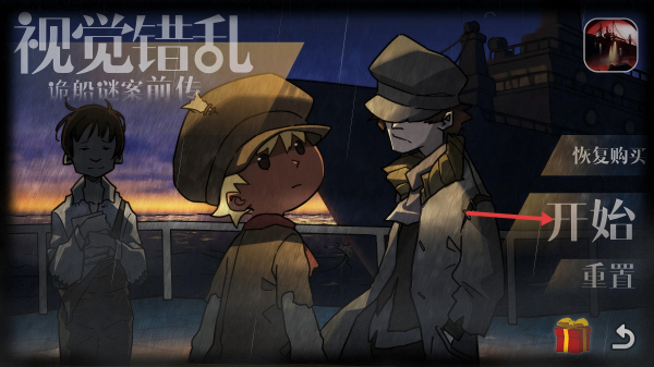 1、进入游戏后,点击【开始】按钮,开启《视觉错乱-诡船谜案前传》的冒险,从初始界面进入游戏流程。