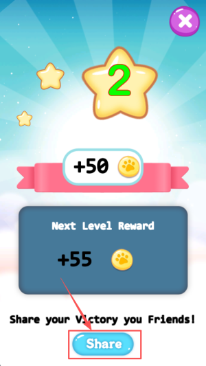 4、最后,完成关卡后点击“Share”按钮分享你的成就。