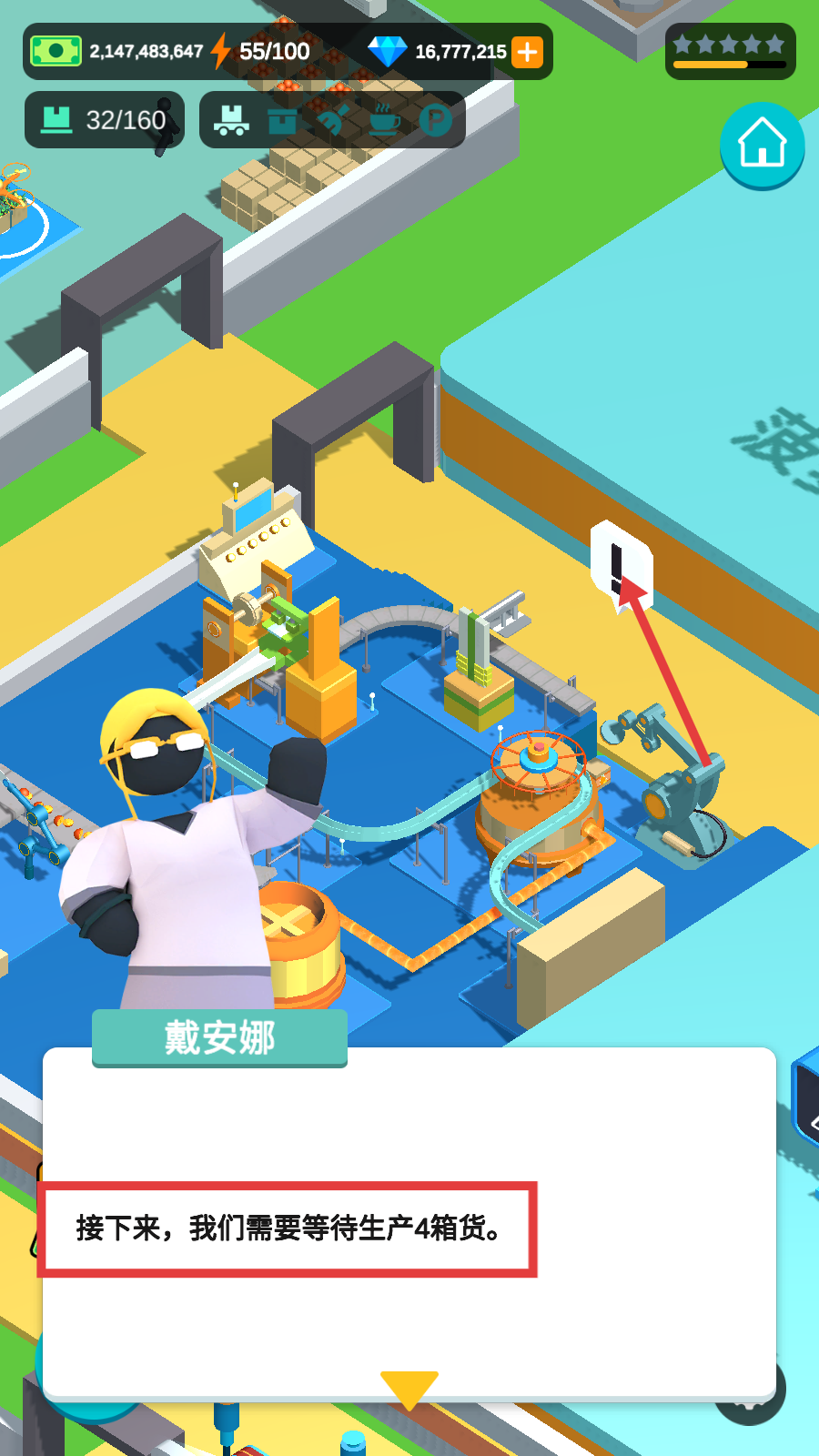 2、进入果汁工厂后,听【戴安娜】提示,需等待生产【4】箱货,期间可观察工厂设备运作。