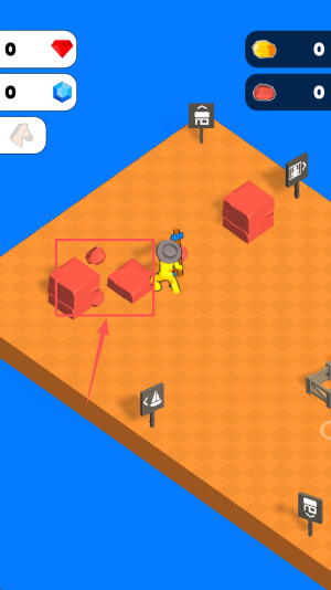 1、首先,点击屏幕上的镐头图标来收集资源。