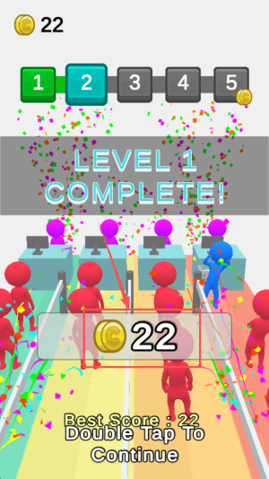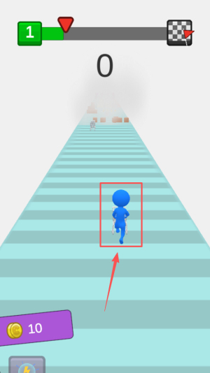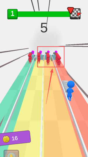4、冲刺完成挑战:持续向队伍前方推进,最终冲到终点撞飞排队的小红人,成功完成插队挑战,解锁后续更高难度关卡。