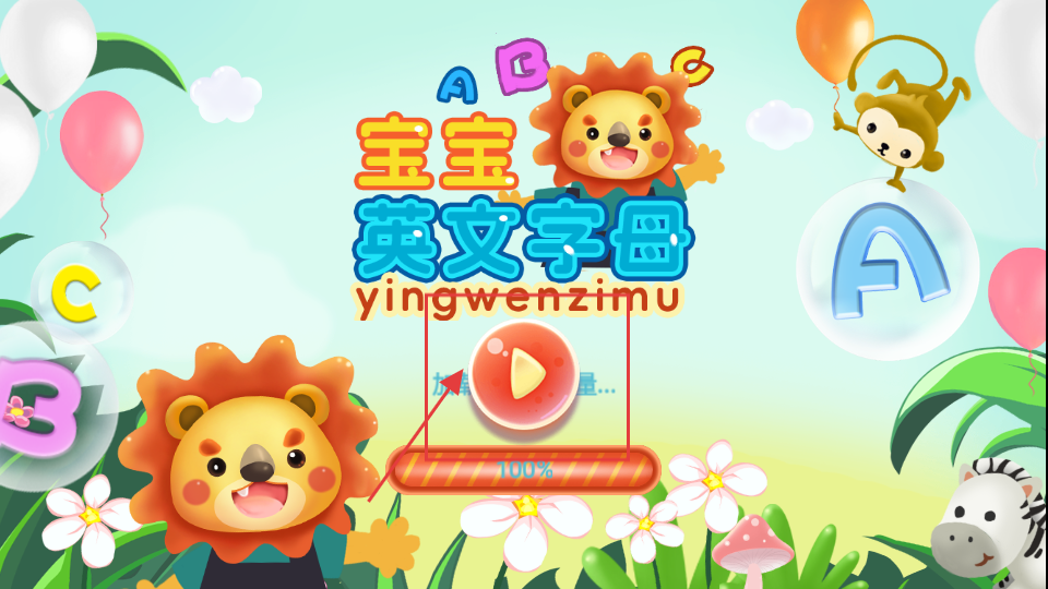 1、进入界面,加载完成后,点播放按钮,开始英文字母学习之旅。