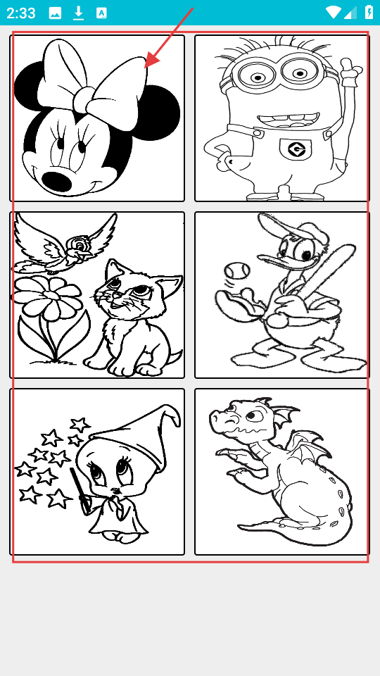 4、进入卡通填色图案页,有米妮、小黄人等图案,选喜欢的卡通图案,进行填色,打造专属作品。