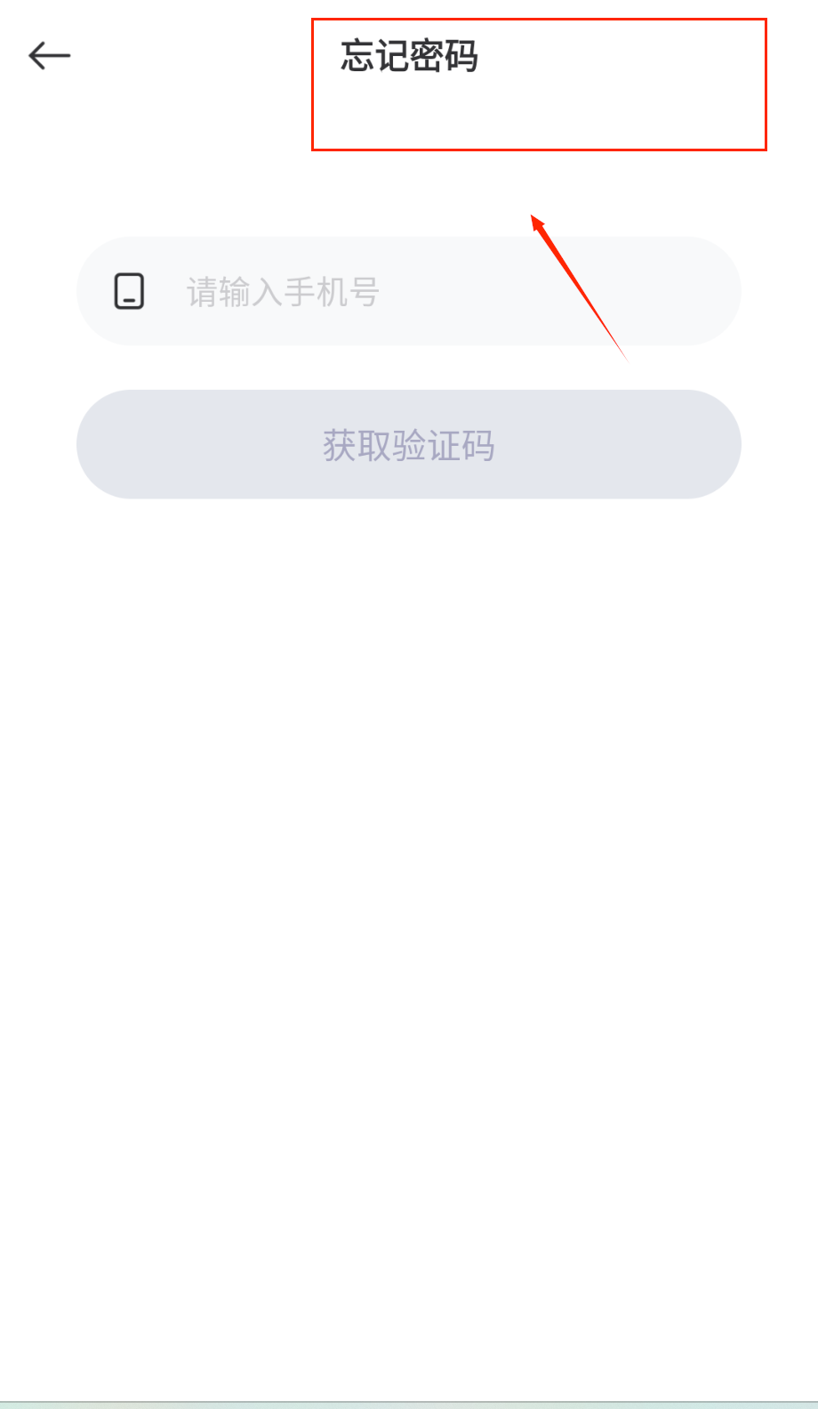 3、忘记密码别着急,在登录页点“忘记密码”跳转新页面,输入注册手机号点“获取验证码”,收到短信填好验证码。