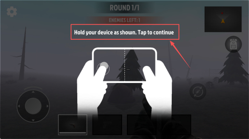 1、如何准备战斗?按图示握持设备,点击屏幕继续进入战斗。