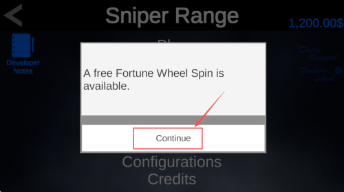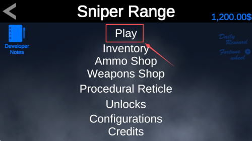 1、如何进入训练场?点击“Sniper Range”,查看价格1,200.00$,点击“Continue”进入训练场主界面。