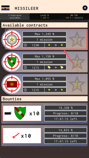3、如何接受合同?在合同列表中点击赏金与难度合适的任务,再点“BContracts”领取。