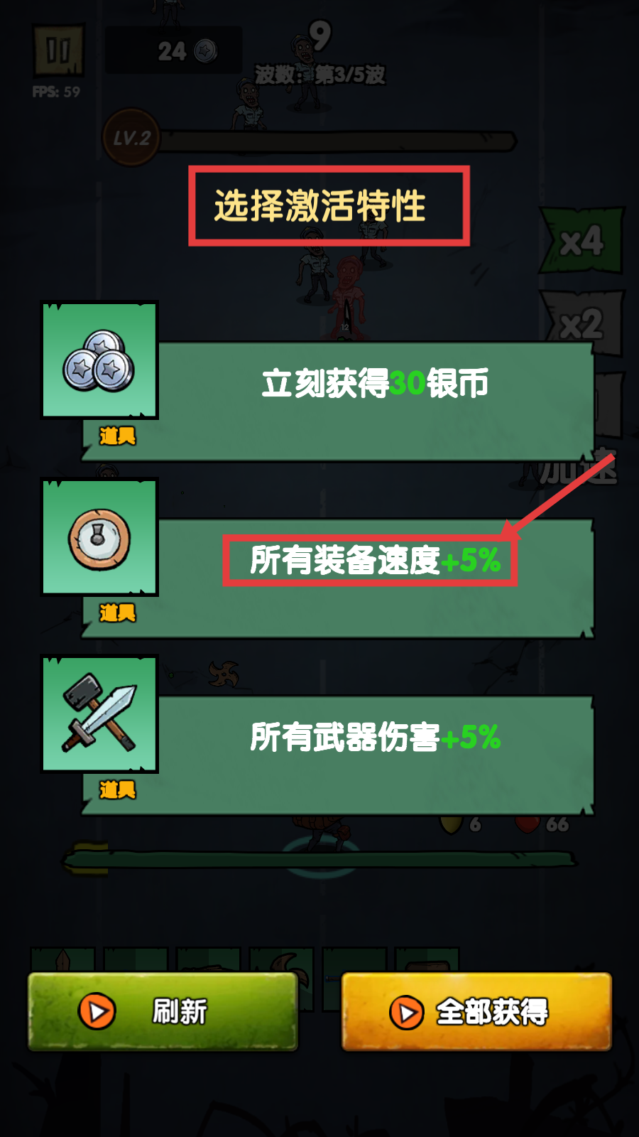 3、升级出现【选择激活特性】界面时,优先选择【所有装备速度+5%】这类可提升战斗效率的特性,为后续战斗助力。