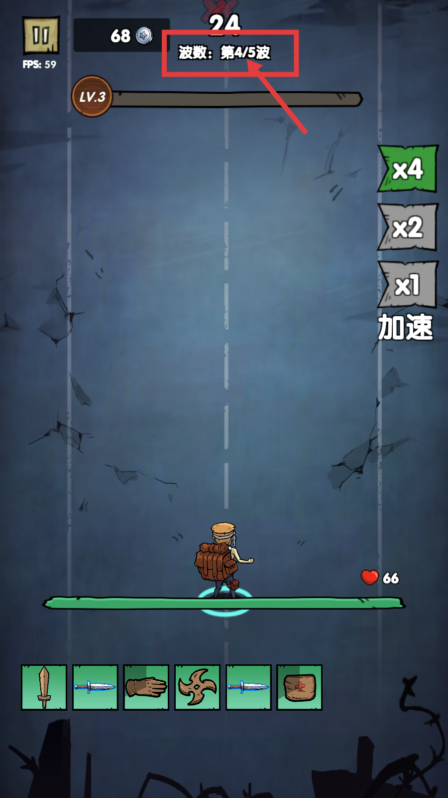 4、推进到波数-第4/5波时,借助之前搭配的装备与激活的特性,继续迎战敌人,向着通关第5波的目标推进。