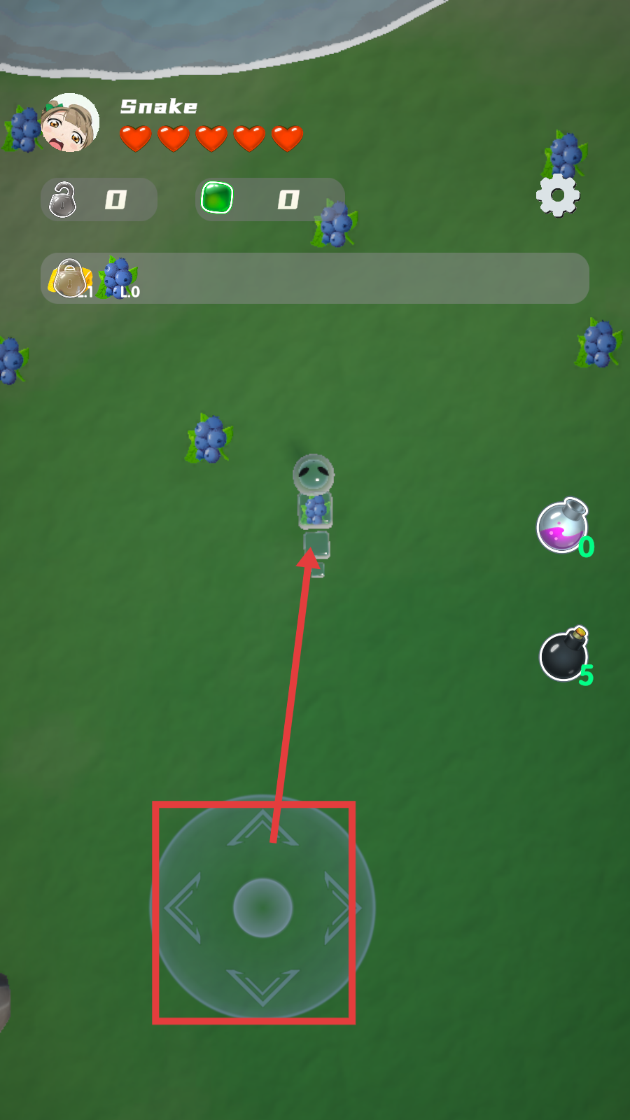 2、进入关卡后,利用下方方向键操控角色移动,朝着蓝莓等物品的方向行进,以便收集物品推进游戏。