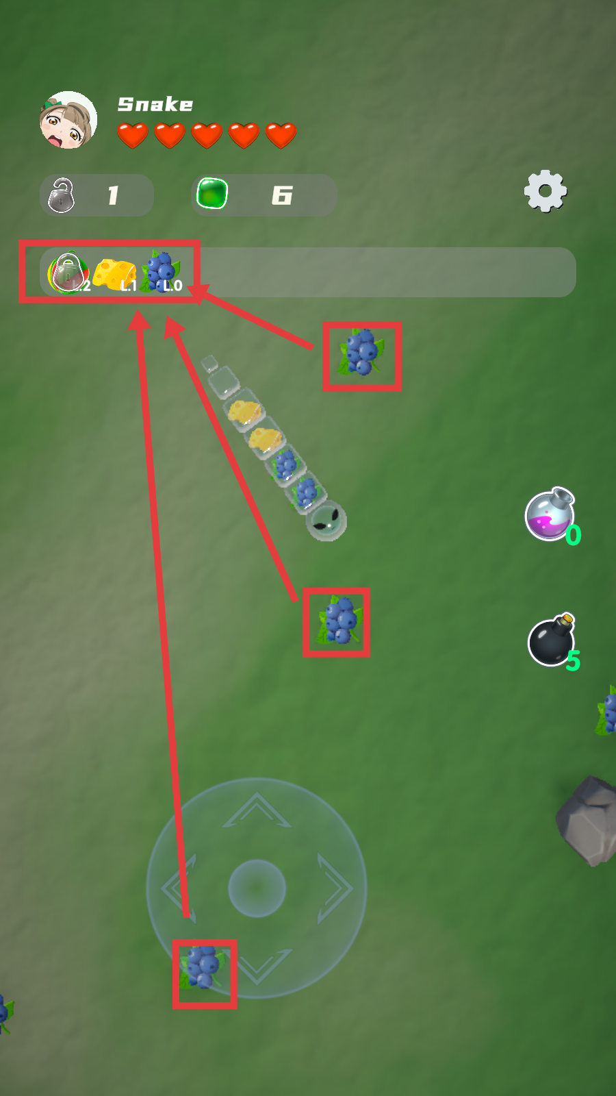 3、合成进化过程:当拥有多条相同等级小蛇时拖动合并,触发合成效果进化出新蛇种,获得技能加成。