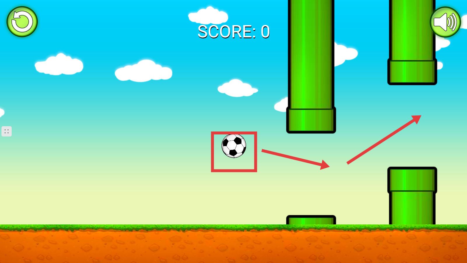 2、挑战过程中,操控足球在绿色管道的空隙间移动,要避开管道障碍,让足球持续行进。