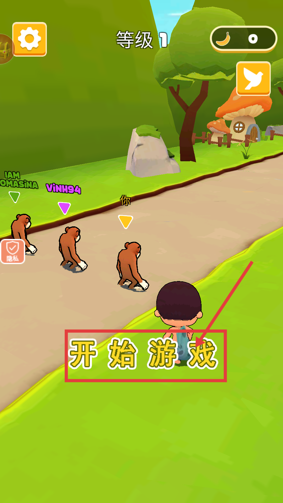 1、进入【等级1】,点击【开始游戏】按钮,开启与猴子等角色一起的爬梯挑战。