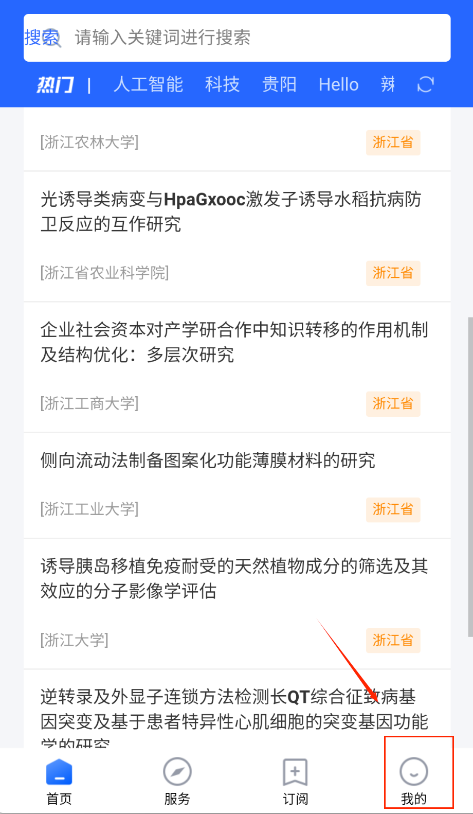 1、注册登录后进入首页选择查询类型,包括科技项目、政策文件、研究成果等六大类别,点击相应图标进入专业查询界面。