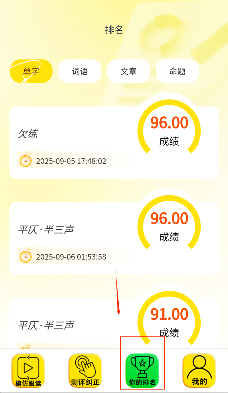 3、词汇库按考试大纲分级整理,包含3500个常用字词的标准读法,支持按声母韵母分类检索,方便针对性强化训练。