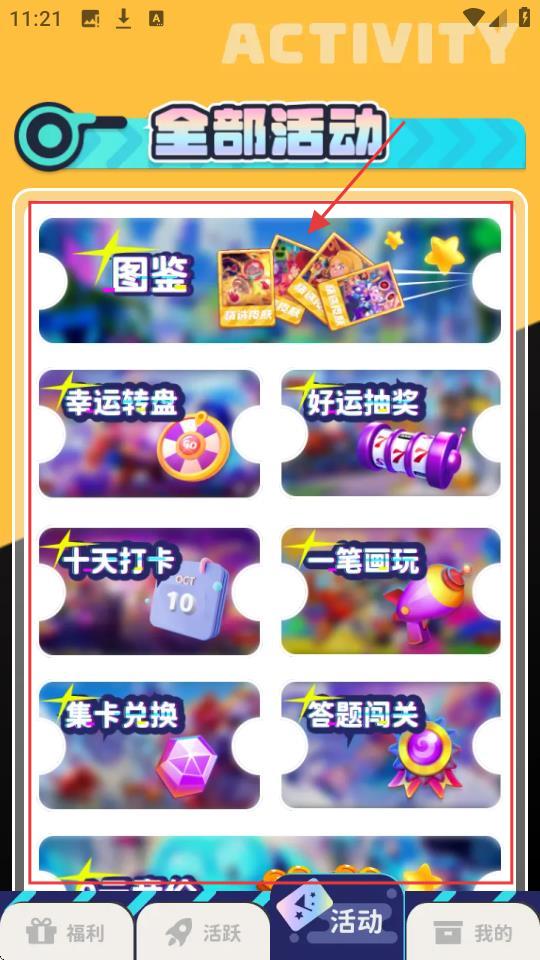 4、进入活动页,有【图鉴】【幸运转盘】等全部活动,选感兴趣的活动,参与活动,获取奖励。