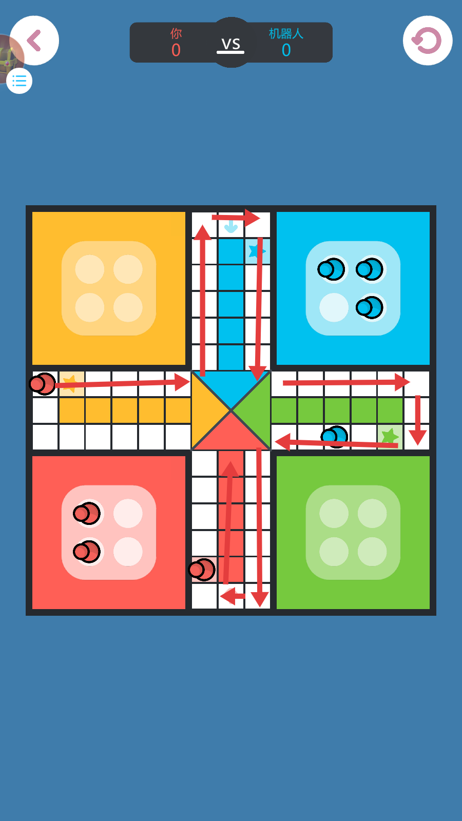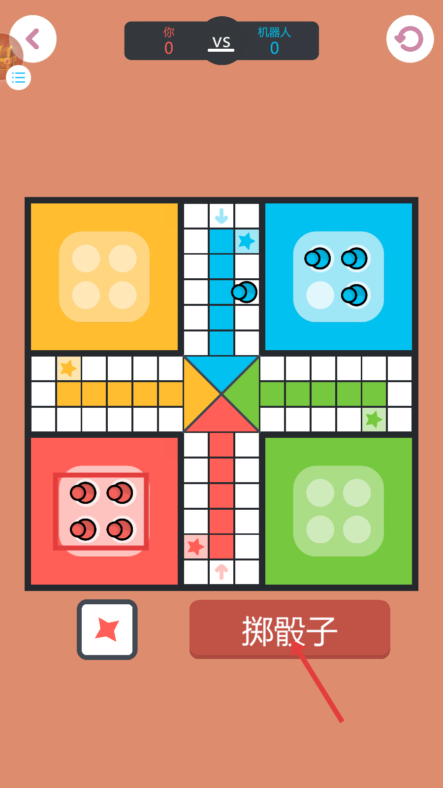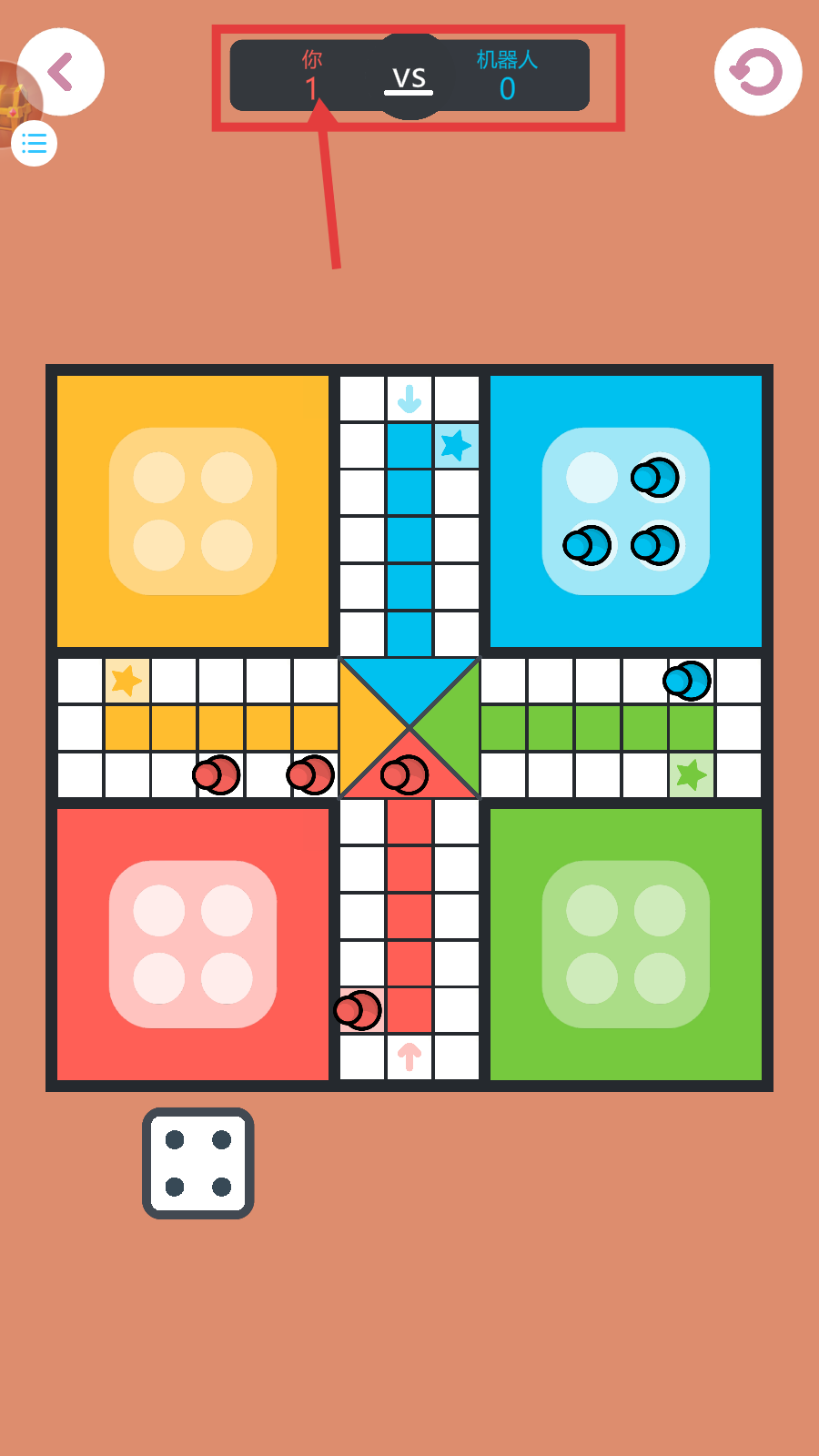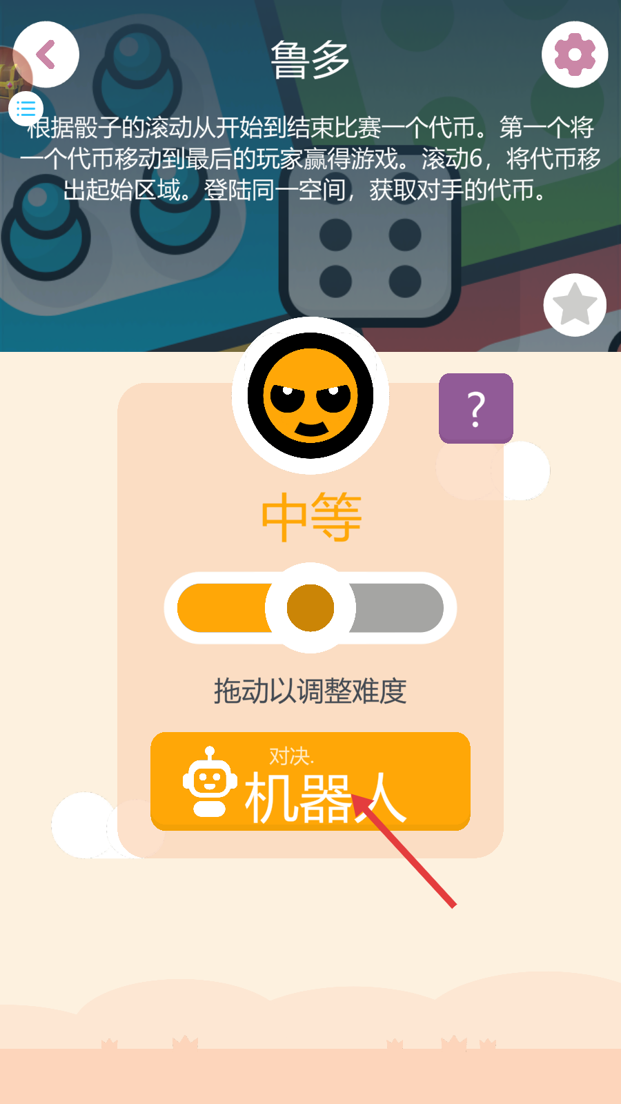 1、进入【鲁多】游戏,调整难度为“中等”后,点击【对决机器人】,开始与机器人的对战。