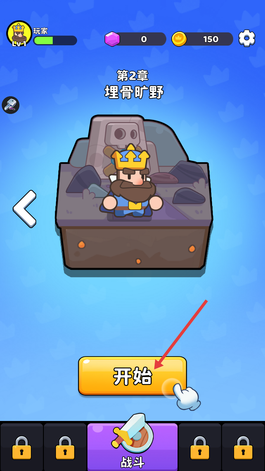 1、进入第2章【埋骨旷野】,点击黄色【开始】按钮,开启本章节的冒险与挑战。