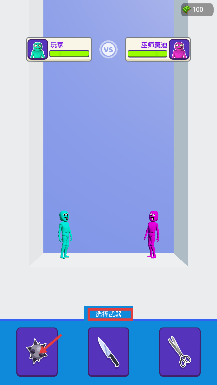 2、对战【巫师莫迪】时,点击【选择武器】,挑选合适的武器(如狼牙锤)参与战斗。