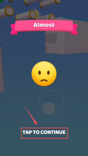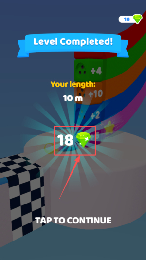 3、然后,当接近终点时,点击“TAP TO CONTINUE”按钮继续游戏。