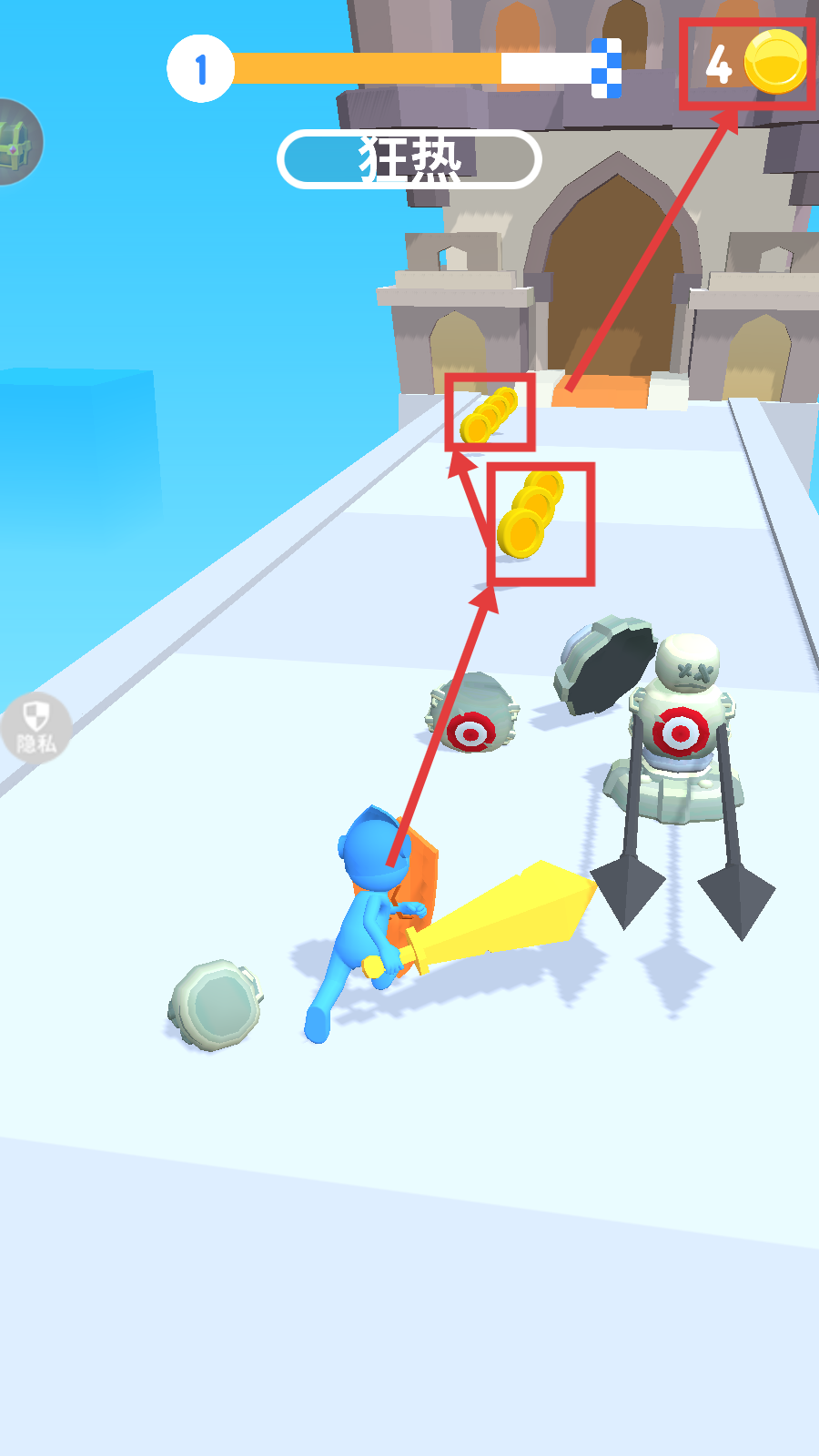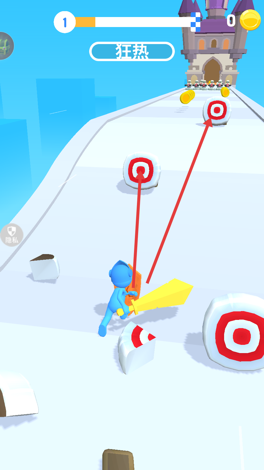 2、靠近靶标后发起攻击,能破坏靶标,还可触发【狂热】状态,提升攻击效率,更快推进关卡进度。